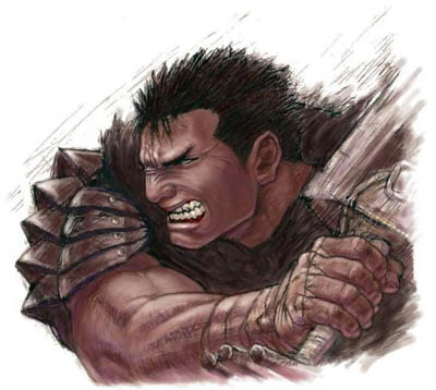 HN「江別の鷹」君からお正月絵ベルセルクのガッツさんいただきました。 早速オリジナルサイズのものを画廊に置いておきます。 彼は僕が絵を描き始めるきっかけになった友人の一人なんですよ。 それにしても正月の休みボケを吹き飛ばす益荒男ぶり。 マリみてやギルティの漫画絵に混じって正気を失ったのでしょうか。 改めて見ると、トップ絵と今日の日記絵のギャップに正直 笑いました。 お正月絵とのことですが、昼夜を問わず敵がワラワラ出てくるわけですから黒い剣士に休みなんかないんですよね。 (原作者はよく休載されていますが) ゴッドハンドや使徒たちもお正月休みとかあればガッツさんも正月ボケとか体験できるのですが…。 それでゴッドハンド達がモチをのどに詰まらせて死んでしまったりしたらしめたもの。 毎年いるんですよね。モチを喉に詰まらせる人。 あれってかなり不条理な死に方ですよね。 天使長ボイドあたりやっちゃいそう(結構なお年でしょうから)。 でもそれでゴッドハンドが死んじゃったらベヘリットはいつも以上に号泣するかも。 ギルティとマリみてのサイトなのにベルセルク話ですみませんです…。 ☆CG 定点観測様・るのーぶろぐ様ご紹介ありがとうございました。 |