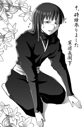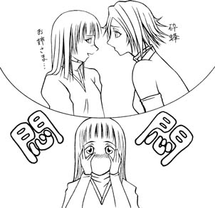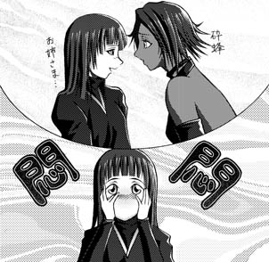 刑軍の装束といえどもバックはお花で飾ってみたり。 あ、百合の花を背負っているからといってジャンルが百合とは限りませんよ。 「そんなドキドキしながら謁見なんて…い、一体これからナニが始まるの?」 なんて。 深読みしすぎですよ。 もう嫌ですよ奥さんったら♪ ウチの漫画は夜一と砕蜂がイチャつくだけです。 全ページ例外なくイチャイチャしているだけです。 べ、別に百合なんてことは全く…。そんな…ねぇ? (「ねぇ?」じゃありません) ☆CG 定点観測様・るのーぶろぐ様ご紹介ありがとうございました。 1月19日(木) BLEACH 夜一と砕蜂の漫画(仮) ペン入れ 4P トーン貼り 1P 仕上げ 2P 合計 7P |